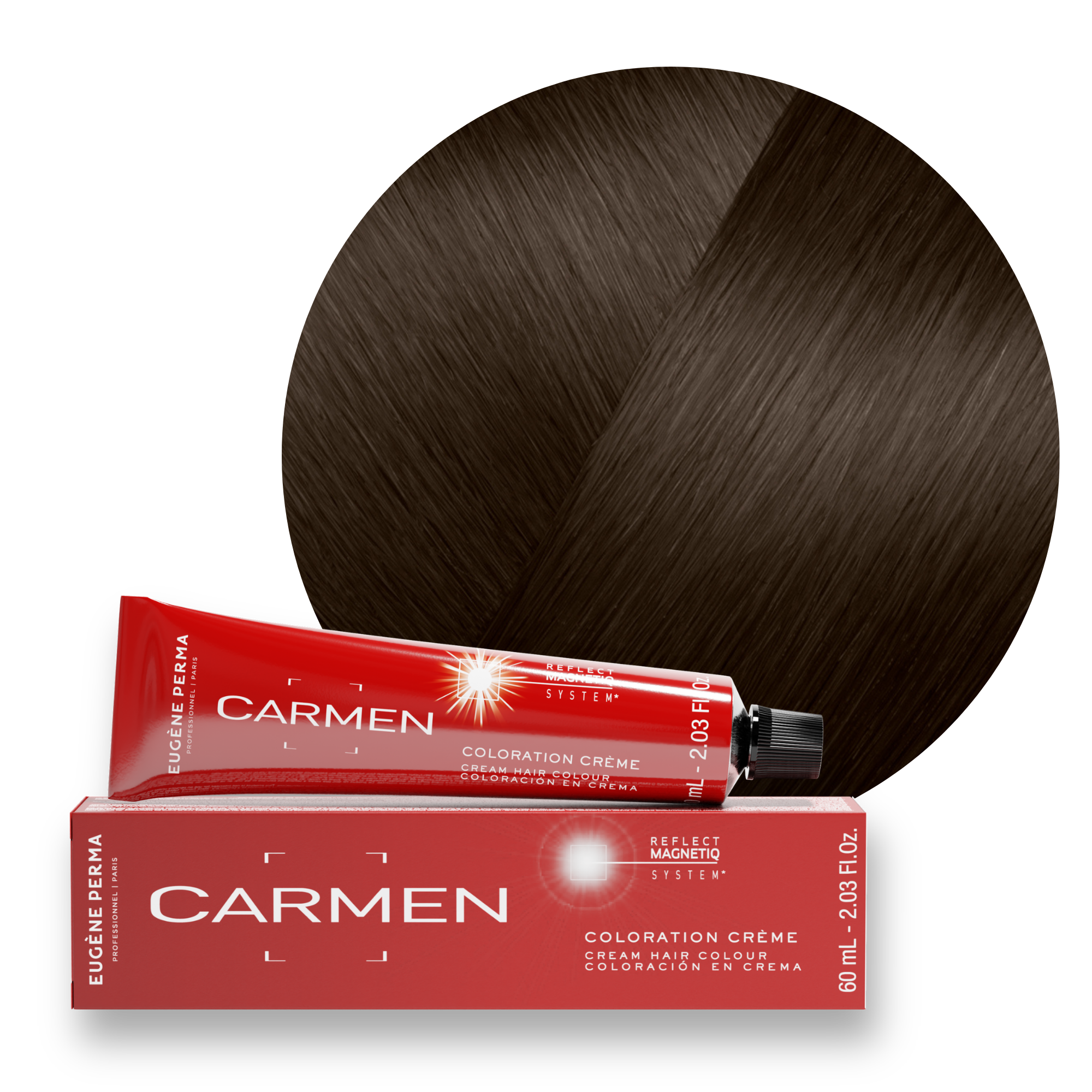CARMEN, la 1ère coloration d’oxydation amplificatrice de reflets et de brillance grâce au reflet magnetic.